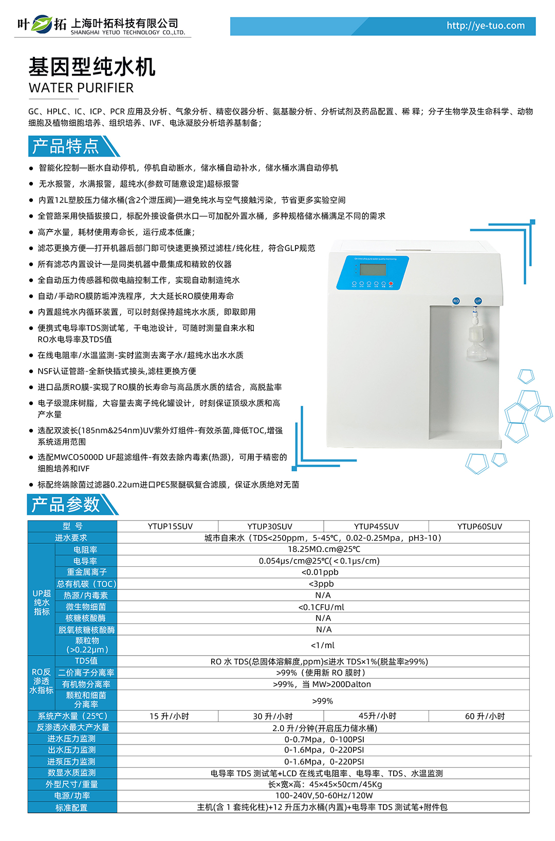 - 內(nèi)置超純水內(nèi)循環(huán)裝置,可以時刻保持超純水水質(zhì),即取即用