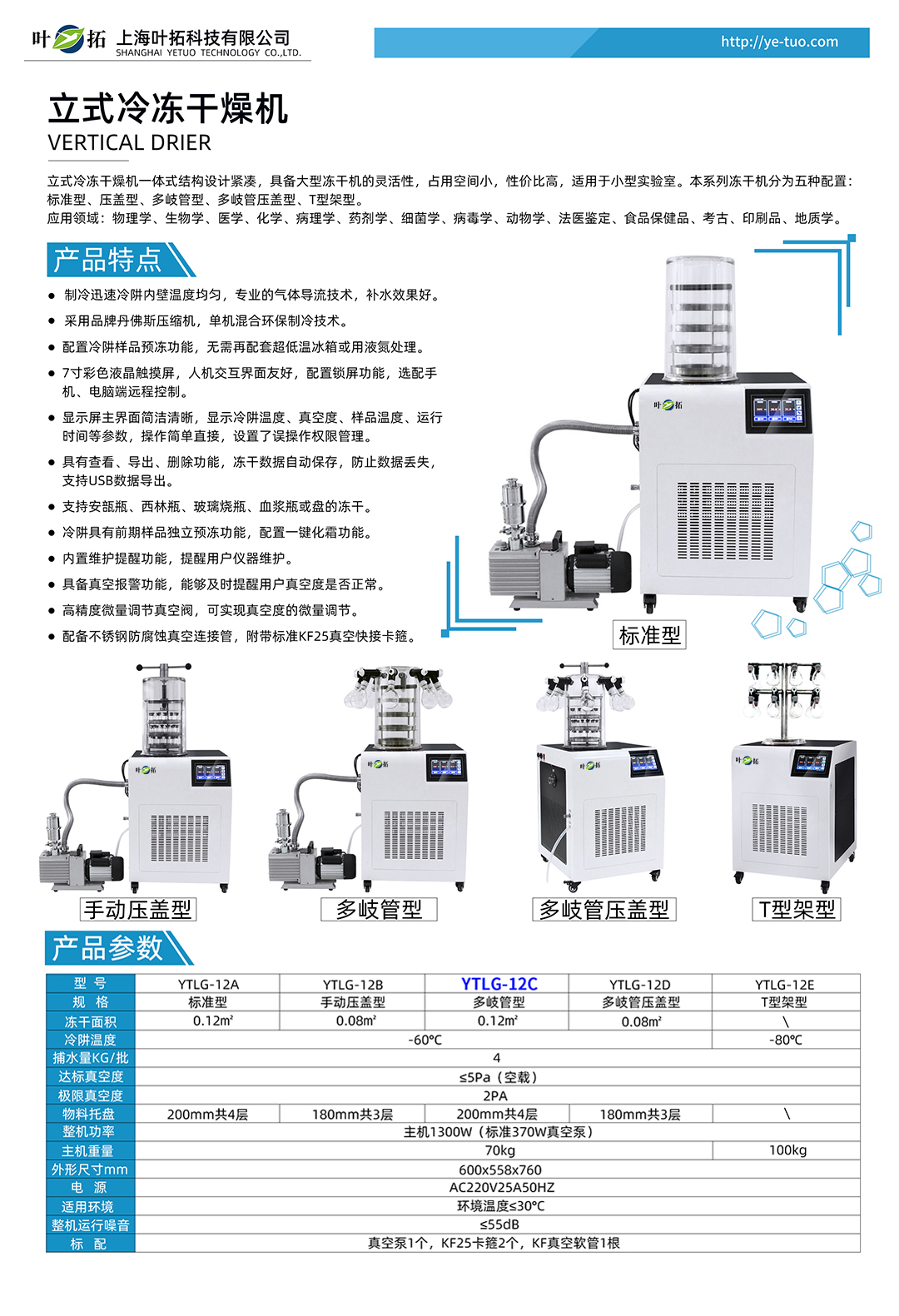 上海葉拓 YTLG-12C 立式凍干機的產品特點: