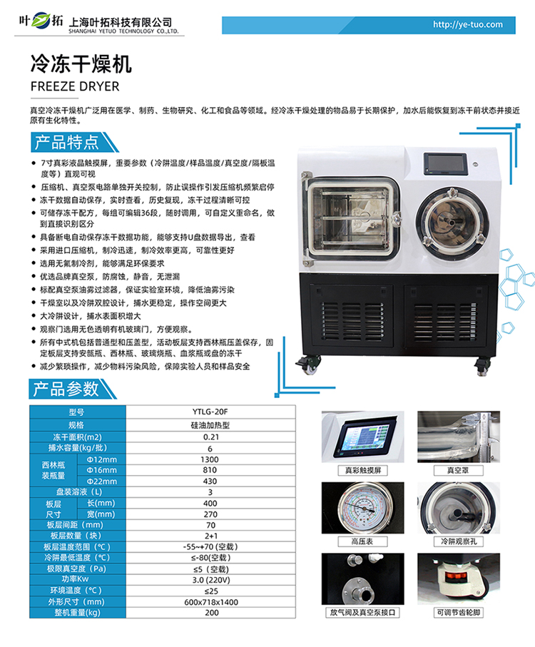 上海葉拓 YTLG-20F 中式真空冷凍干燥機